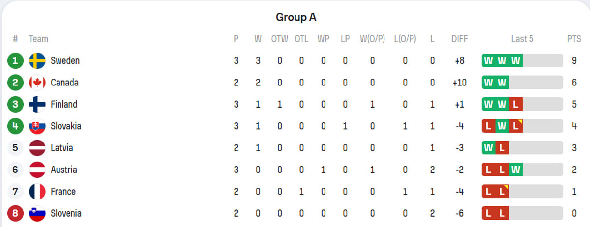 Швеция – Канада 3:5 (1:3, 1:1, 1:1)