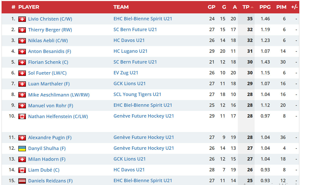Рядом с Евтеховым почти год назад сверкал и Даниил Шульга (2 + 4). И в этом сезоне он подтверждает свой класс, находясь среди лучших бомбардиров чемпионата Швейцарии U-21.