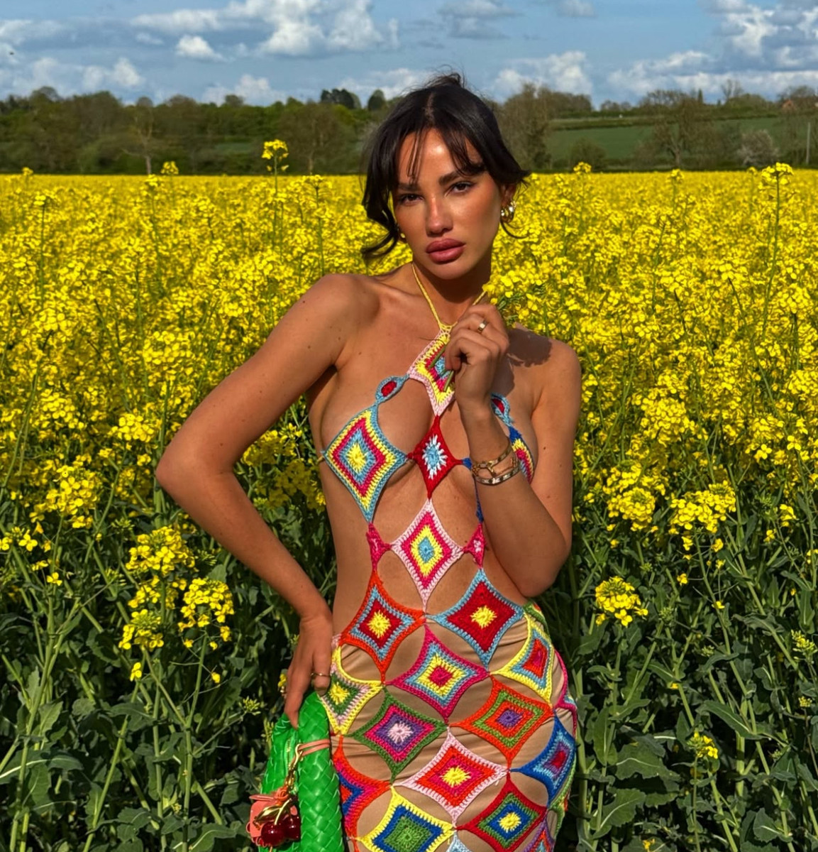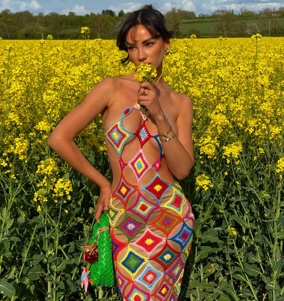 На этот раз 27-летняя модель засияла в ярком весеннем образе, который она продемонстрировала на фоне яркого поля цветов.