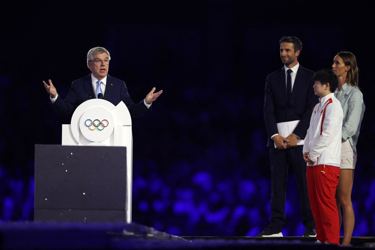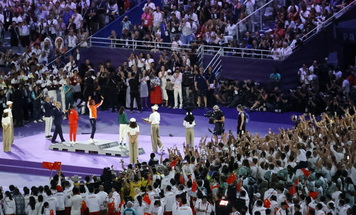 А тогда на Стад де Франс заиграла главная музыкальная тема Олимпиады, под которую награждали атлетов, а на экране появились кадры эстафеты олимпийского огня. Глава оргкомитета "Париж-2024" Тони Эстанго и президент МОК Томас Бах вышли в сопровождении шести медалистов, среди которых были кубинский борец Михаил Лопес, выигравший в Париже свое пятое "золото" на пятой Олимпиаде подряд и французский дзюдои , который у себя дома также стал пятикратным олимпийским чемпионом