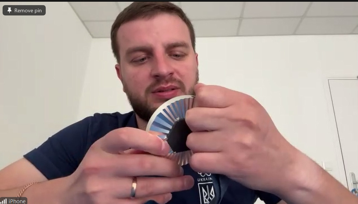 — Организаторы сделали так, что есть кусок железа из Эйфелевой башни и она как будто должна разлагаться на 3 части, которые можно подарить родным или тренерам. Вы уже изучали эту конструкцию, какая она с виду, на вес?