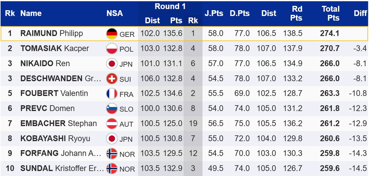 Немец прыгун Филипп Раймунд завоевал золото зимних Олимпийский игр 2026 года на нормальном трамплине (HS 107). Он на 3,4 балла опередил поляка Кацпера Томасяка. Бронзу разделили сразу два прыгуна – японец Рен Никайдо и швейцарец Грегор Дешванден.