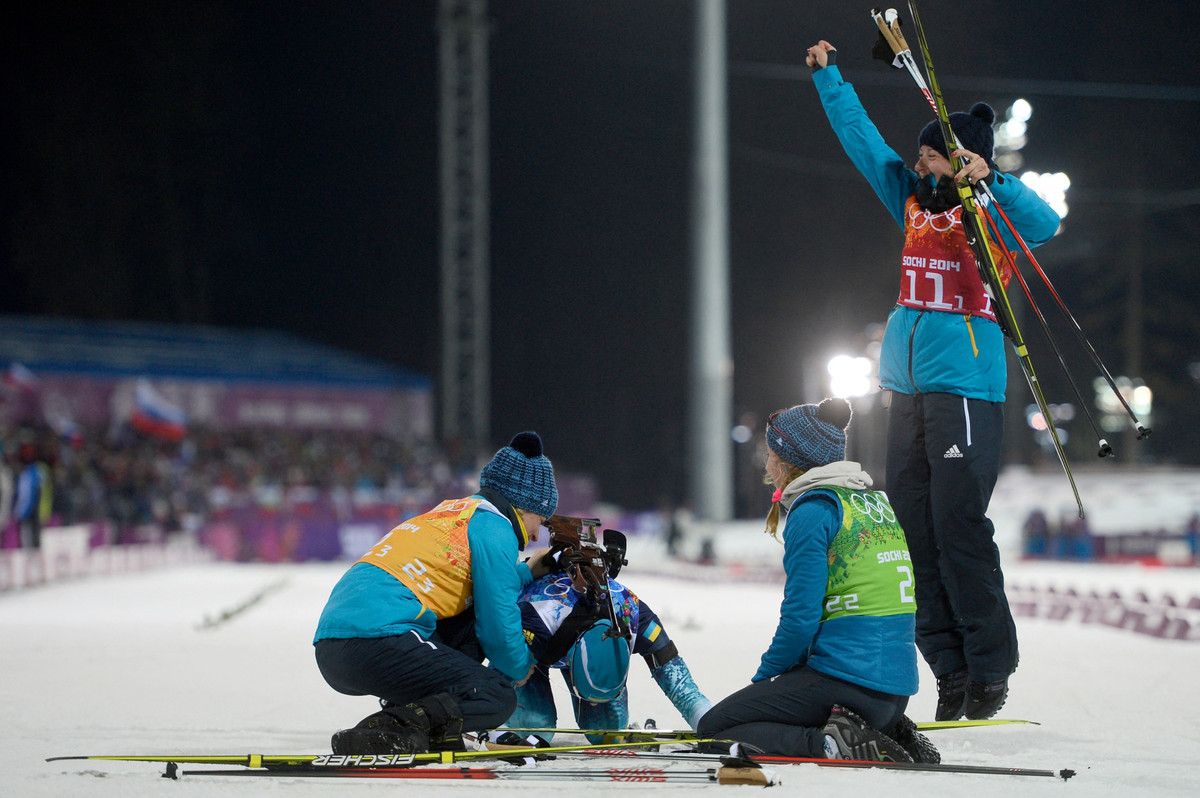 Главный успех Украины произошел 21 февраля, на следующий день после "кровавого четверга" в центре Киева. Украинская женская биатлонная сборная в составе Виты Семеренко, Юлии Джимы, Вали Семеренко и Елены Пидгрушной еще до гонки была фаворитом по котировкам букмекеров, да и во всех эстафетах того сезона неизменно была на пьедестале.
