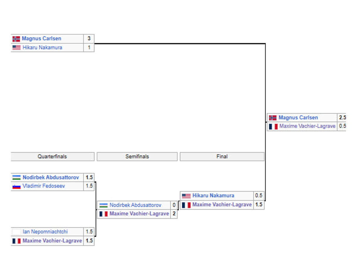 Норвежский гроссмейстер стал победителем группового этапа, поэтому на пути к финалу, ему было достаточно обыграть Хикару Накамуру. Вашье-Лаграв стал победителем нижней сетки.