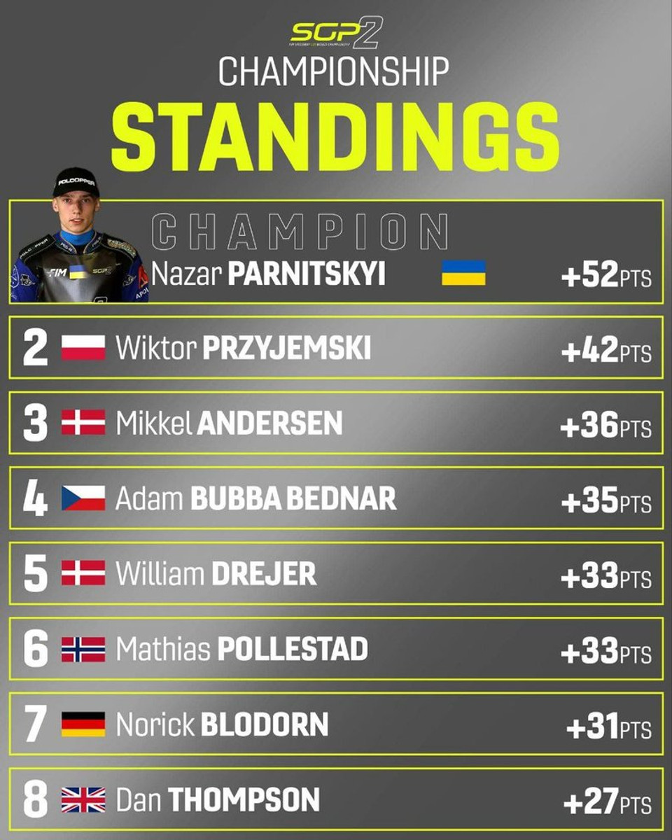 В итоге, украинский гонщик набрал 52 очка, опередив вице-чемпиона мира Виктора Пшиемского.
