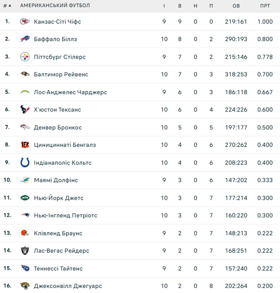 Был близок к поражению и чемпион Супербоула Канзас-Сити. Чифс во второй половине игры сумели сдержать оборону Денвера, а сами забили 2 филд-гола. Клуб продолжает уходить без поражений этого сезона.