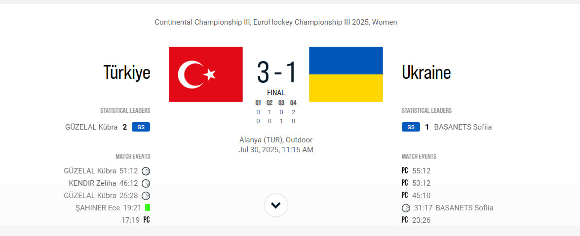 Мужская и женская сборные Украины по хоккею на траве продолжают выступления на ЧЕ-2025. Парни сумели обыграть Болгарию со счетом 15:0, а вот девушки, к сожалению, проиграли Турции со счетом 1:3.