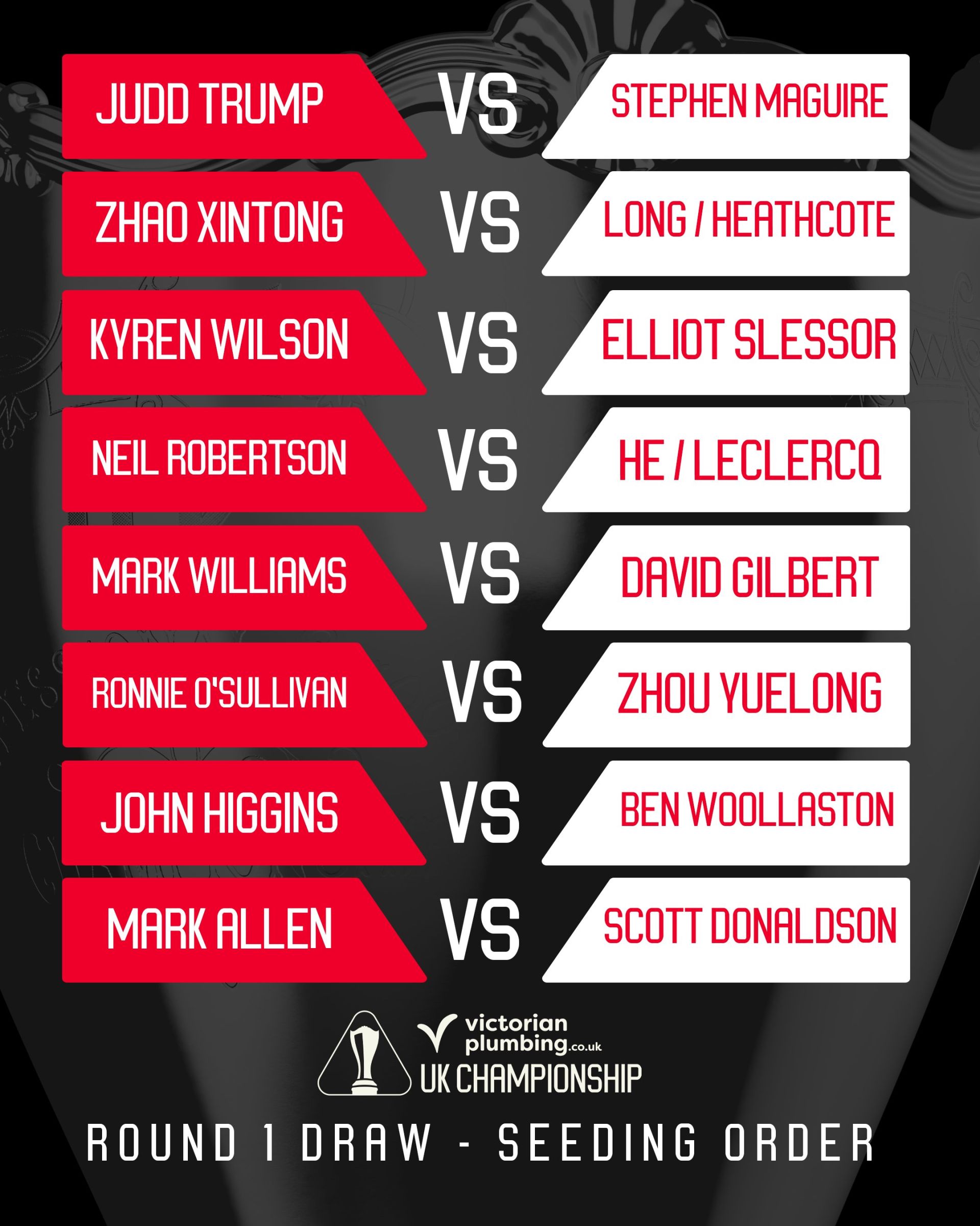 Пары первого раунда опубликовала пресс-служба World Snooker Tour.