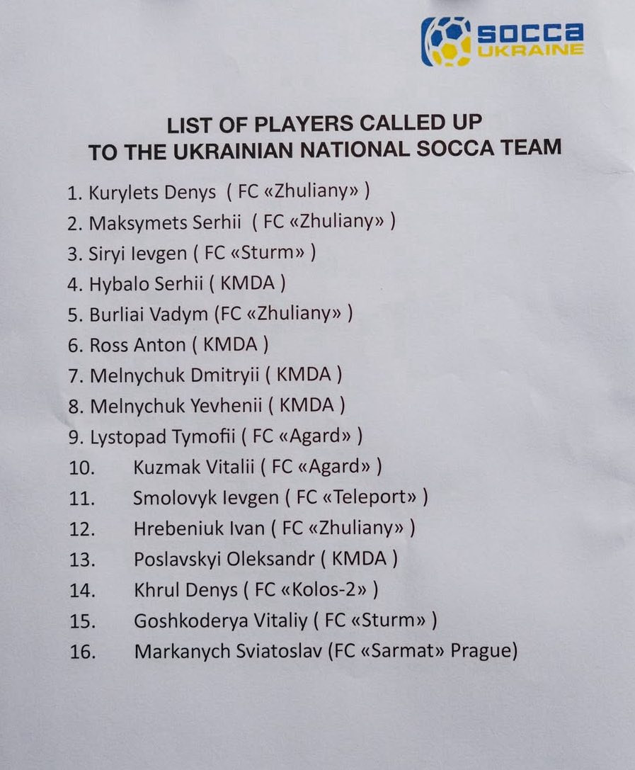 Сборная Украины по сокке определилась с составом, который будет представлять страну на чемпионате мира.