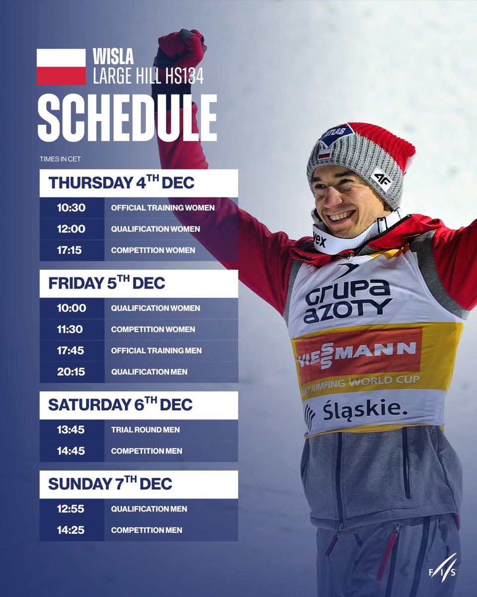 После трех стартовых этапов на севере Европы Кубок мира по прыжкам с трамплина отправляется в центральную Европу, которую покинет только во второй половине января. На этой неделе лучшие прыгуны мира будут соревноваться в польской Висле.