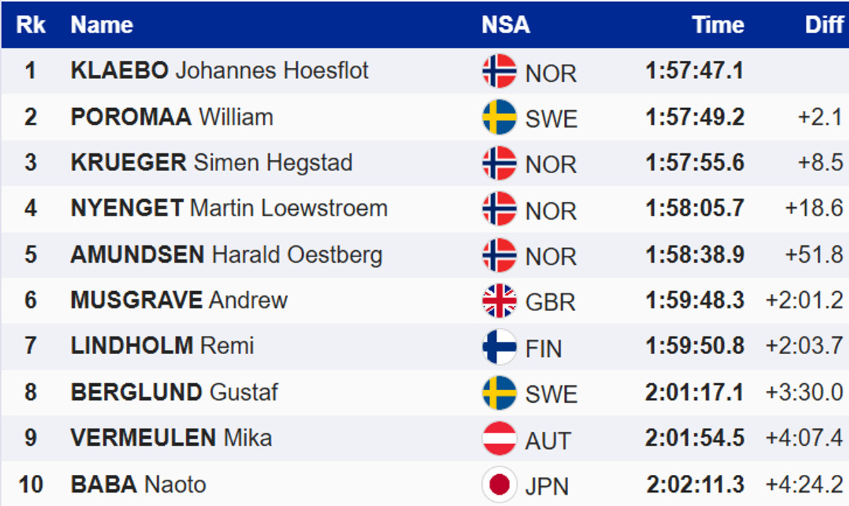 Бриньоне на 1,36 секунды опередила ближайшего преследователя, новозеландку Элис Робинсон. Топ-3 замкнула албанка Лара Кольтури.