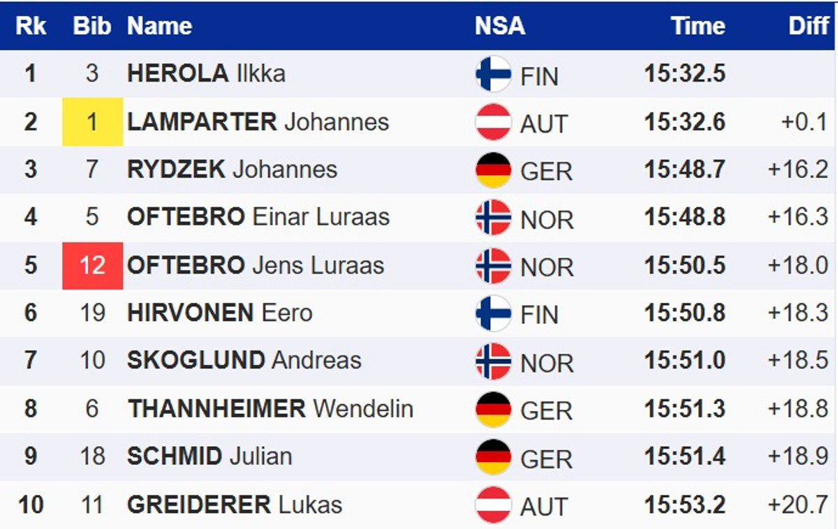 Для Хероли это вторая в карьере победа на Кубке мира. Предыдущую он одержал в прошлом году в Холменколлене.