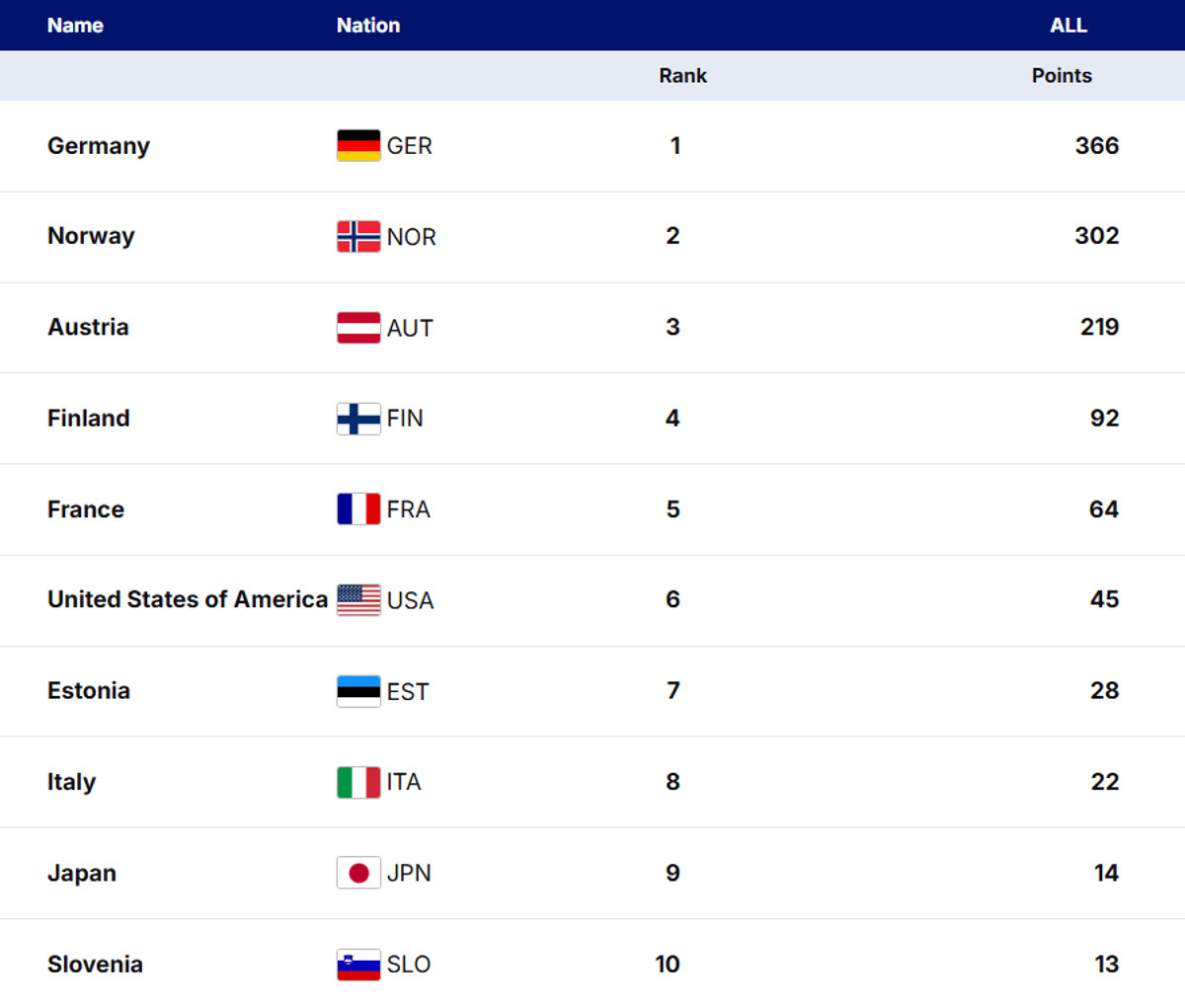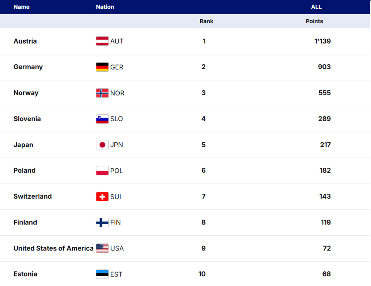 Несмотря на все успехи немцев, нет никаких сомнений в том, что сильнейшей командой мира пока остается сборная Австрии. Вторым в субботу стал Ян Херль, однако уже в воскресенье ему не повезло с ветровыми условиями, и он показал лишь 20-й результат, потеряв второе место в общем зачете Кубка мира. Опередить его сумел Штефан Крафт, который в Руке дважды попал на подиум – второе и третье места. Не выпадает из топ-6 в нынешнем сезоне и Даниэль Чофениг. Продолжает удивлять Максимильян Ортнер, его серия из попаданий в топ-10 прервалась лишь 16-м местом в воскресенье в очень сложных ветровых условиях.