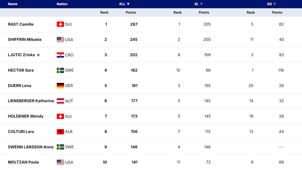 главные соперницы Шиффрин в общем зачете неудачей американки не