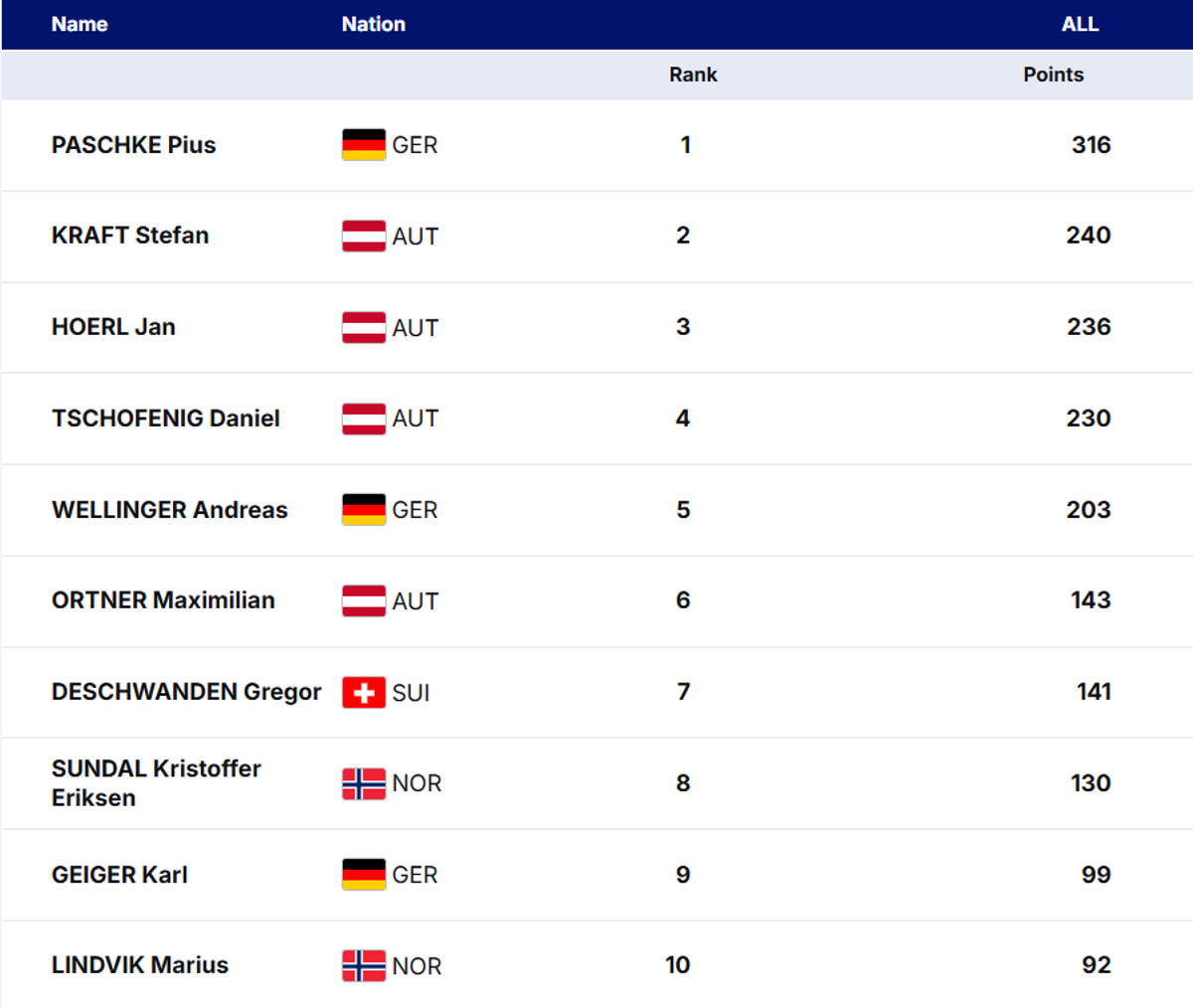 Этап в Руке превратился в бенефис сборной Германии. Да, воскресная победа Андреаса Веллингера в какой-то степени была подарком судьбы, однако субботний успех Пьюса Пашке – точно нет. 34-ветеран сейчас объективно сильнейший прыгун мира, и мы можем лишь гадать, насколько долго он сможет удерживаться на таком уровне, учитывая то, что за Пашке закрепилась устойчивая репутация "декабриста". В воскресном турнире ему не повезло с ветровыми условиями, однако даже в такой ситуации он сумел занять седьмое место и сохранить довольно комфортное как для столь ранней стадии сезона лидерство в Кубке мира.