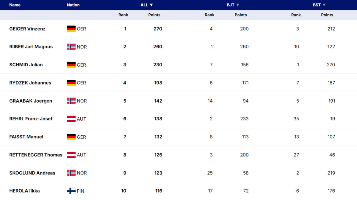 Несмотря на все трудности с погодой, продолжает демонстрировать очень стабильные результаты Грегор Дешванден, а вот Рёю Кобаяси до сих пор не может восстановиться после перенесенной в Лиллехаммере болезни. Звездный японец в текущем сезоне до сих пор ни разу не попал даже в топ-15.
