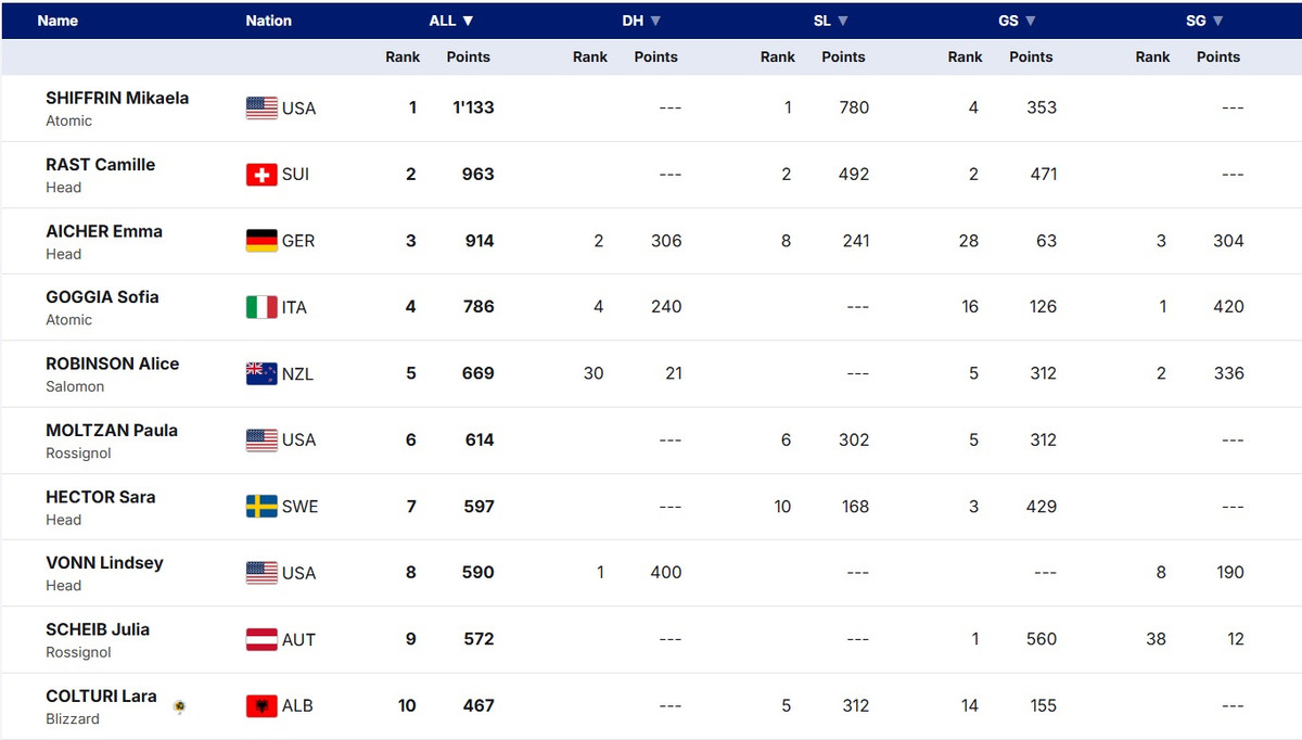 Что касается других итальянок, то продолжает выдавать стабильные результаты Лаура Пирано, которая трижды финишировала в топ-10. А вот Федерика Бриньоне по ходу этапа в Сольдеу снова начала испытывать боль в травмированной ноге. Героиня Олимпиады-2026 пропустила вторую контрольную тренировку и пятничный скоростной спуск, и выступила только в двух супергигантах.