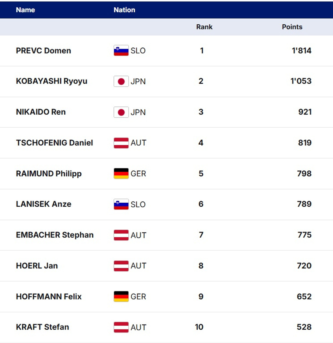 В воскресенье же австрийцы выступили значительно хуже – кроме Эмбахера никто не попал в топ-10. Шустер занял только 22 место – талантливому австрийцу стабильности еще очень не хватает. А вот звездные ветераны сборной Австрии дважды провалились. Мануэль Феттнер в пятницу вообще не прошел квалификацию. После этого единственным прыгуном, который в текущем сезоне участвовал во всех личных стартах Кубка мира, остался Превц.
