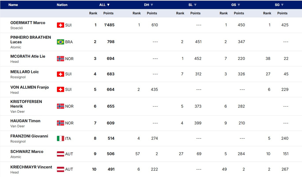Как бы то ни было, эта победа для Одерматта стала исторической, 54-й в карьере на Кубке мира. По этому показателю он сравнялся с легендарным Херманном Майером и теперь делит с ним третье место в истории. Вторым с 67 победами идет Марсель Хиршер, и, учитывая темпы Марко, догнать его до конца следующего сезона – вполне реальная задача.
