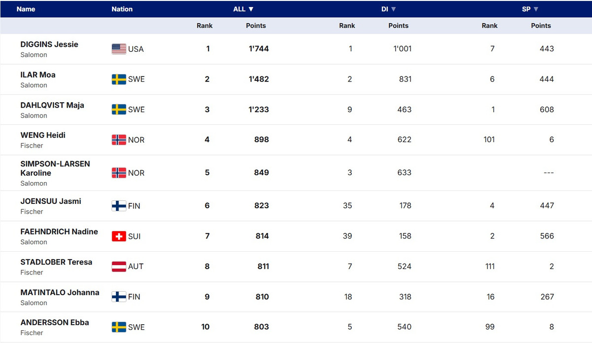 Что касается борьбы за Большой хрустальный глобус, то Джессика Диггинс увеличила свое преимущество над Моа Илар. Шведка в очной борьбе выбила свою соперницу уже в четвертьфинале спринта, однако сама не сумела воспользоваться этим в полной мере, вылетев в полуфинале.