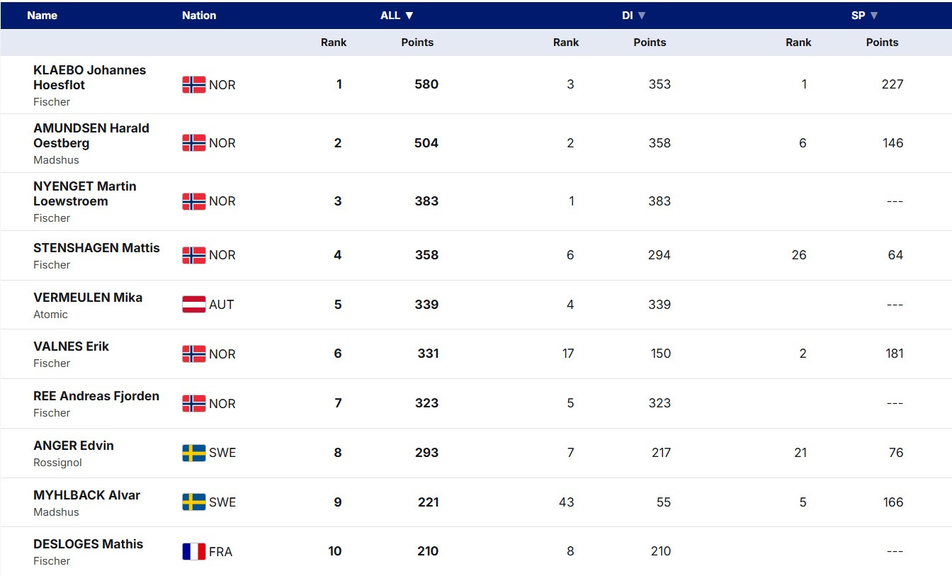 Скандинавам завершение карьеры Риибера и Йоргена Гробака далось нелегко. Домашний этап они провалили: лучший результат за два дня – 8 место Айнара Луроса Офтебро в субботу. Он подтверждает свой статус лидера сборной Норвегии на данный момент, в то время, как его старший брат Йенс, на которого возлагались главные надежды, продолжает разочаровывать.