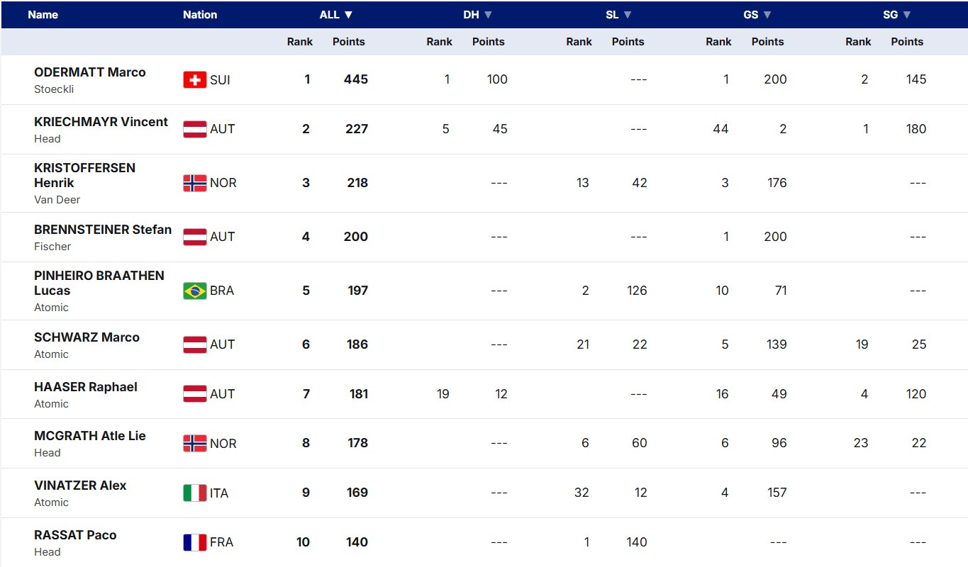 Компанию Одерматту и Винатцеру в лидирующей тройке составил Хенрик Кристофферсен, для которого это второй подряд подиум в гиганте. Легендарный норвежец на старте нынешнего сезона также в слаломе выглядит слабее, чем в гиганте. Хотя, в отличие от Винатцера, в его случае это выглядит скорее стечением обстоятельств, чем закономерностью.