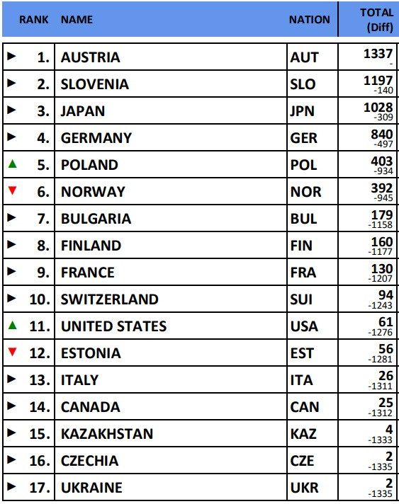 Йонас Шустер, который на польском этапе снова подменял Штефана Крафта, выступил неплохо – 22 и 20 места. При чем, в субботу он вполне мог оказаться на несколько позиций выше, если бы не смазал приземление в первой попытке. В целом же Шустер в сборной Австрии точно не выглядел худшим, однако закрепиться в основе команды на дальнейшие этапы ему будет непросто. Да, уровень подопечных Видхельцля заметно просел, однако какого-то явного кандидата на вылет нет.