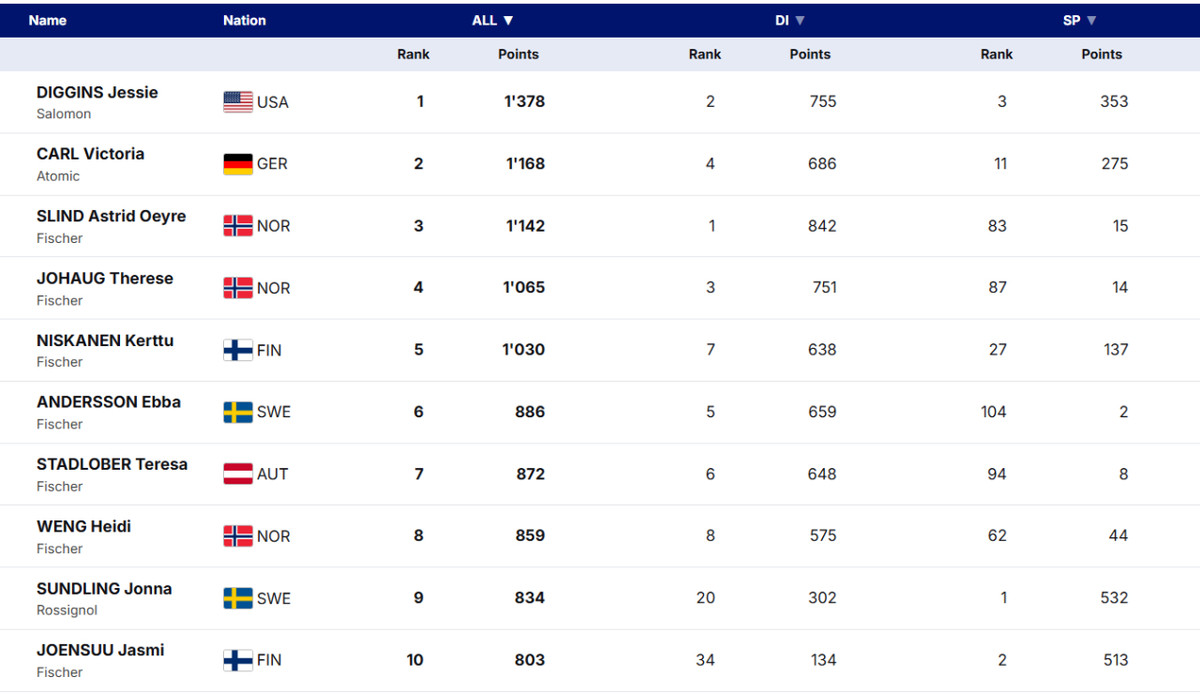 Кстати, упомянутая выше Шмидт в момент падения Диггинс шла за ней и вынуждена была притормозить и обгонять свою соперницу. Если бы не этот инцидент – кто знает, возможно канадка бы даже поборолась с Дальквист за третье место. В воскресном массстарте Диггинс стала пятой, а топ-3 замкнула Сундлинг – блестящий уикенд в исполнении звездной шведки, которая благодаря неудаче Ясми Йонсу (вылет в полуфинале) перехватила у финки красный биб лидера спринтерского зачета Кубка мира.