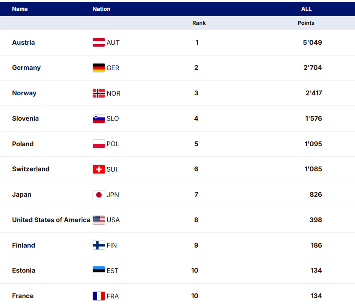 Ну а сборная Австрии, как уже было сказано выше, отошла в тень. В субботнем личном турнире подопечные Андреаса Видхёлцля суммарно набрали "всего" 166 очков – это их худший результат в текущем сезоне. Даниэль Чофениг в Оберстдорфе занял лишь четвертое и шестое места, однако даже закрепил свое лидерство в общем зачете – его конкуренты выступили еще хуже.