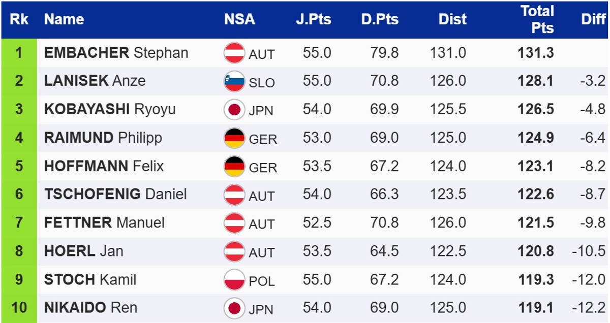 Победу в квалификации одержал австриец Штефан Эмбахер, который опередил словенца Анже Ланишека и японца Рёю Кобаяси. Другие звездный словенец, Тими Зайц, квалификацию не прошел – 51-й результат.