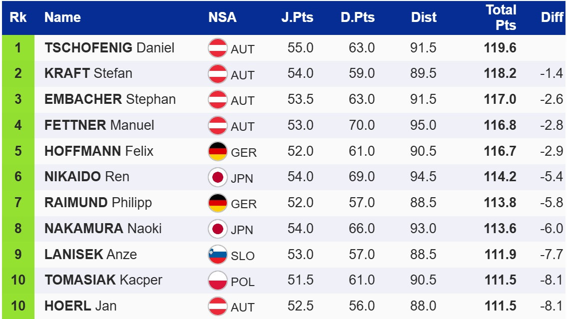 Доминировала в квалификации сборная Австрии, которая забрала первые четыре места. Победу одержал вице-лидер Кубка мира Даниэль Чофениг, который опередил Штефана Крафта и Штефана Эмбахера.