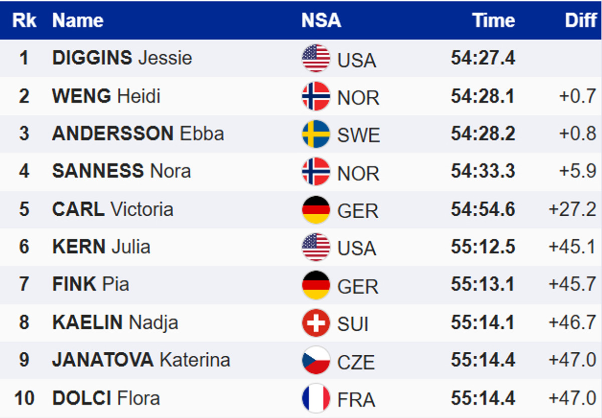 Лыжные гонки. Диггинс выиграла масстарт в Фалуне