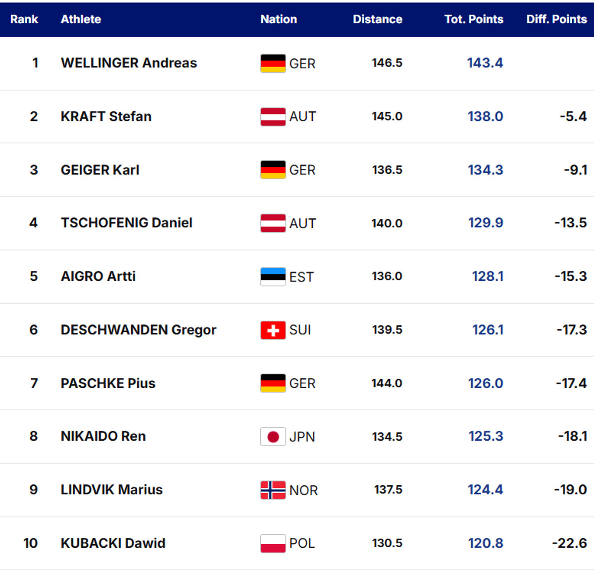 Немецкий прыгун Андреас Веллингер выиграл второй личный старт на этапе Кубка мира в финской Руке. Он опередил австрийца Штефана Крафта и партнера по команде Карла Гайгера. Для Веллингера это восьмая в карьере победа на Кубке мира.