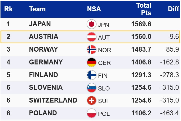 Сборная Японии по прыжкам на лыжах с трамплина неожиданно выиграла командный турнир на летном чемпионате мира 2026 года в немецком Оберстдорфе. Команда в составе Рёю Кобаяси, Томофуми Наито, Наоки Накамуры и Рена Никайдо на 9,6 балла опередила Австрию, которые проигрывала 0,4 балла перед финальным прыжком Яна Хёрля. Бронзу завоевала сборная Японии, сборная Украины участия в командном турнире не принимала.