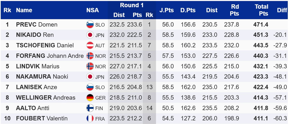 Словенский прыгун на лыжах с трамплина Домен Превц выиграл первый личный старт на финальном этапе Кубка мира в Планице. Он на 20,1 балла опередил японца Рена Никайдо. Топ-3 замкнул австриец Даниэль Чофениг.