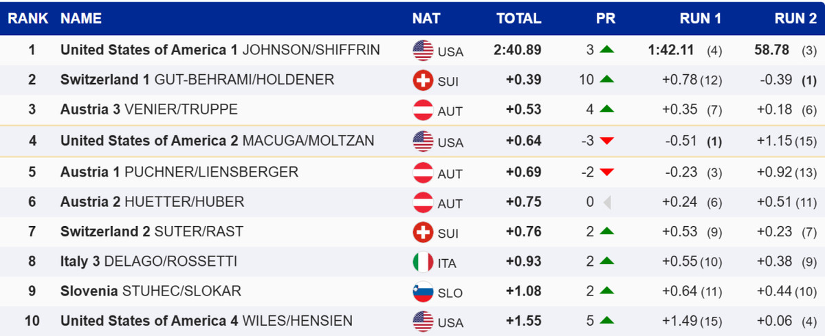 Золото завоевал американский дуэт Бризи Джонсон/Микаэла Шиффрин. Первая показала четвертый результат в скоростном спуске, Шиффрин – третий в слаломе.