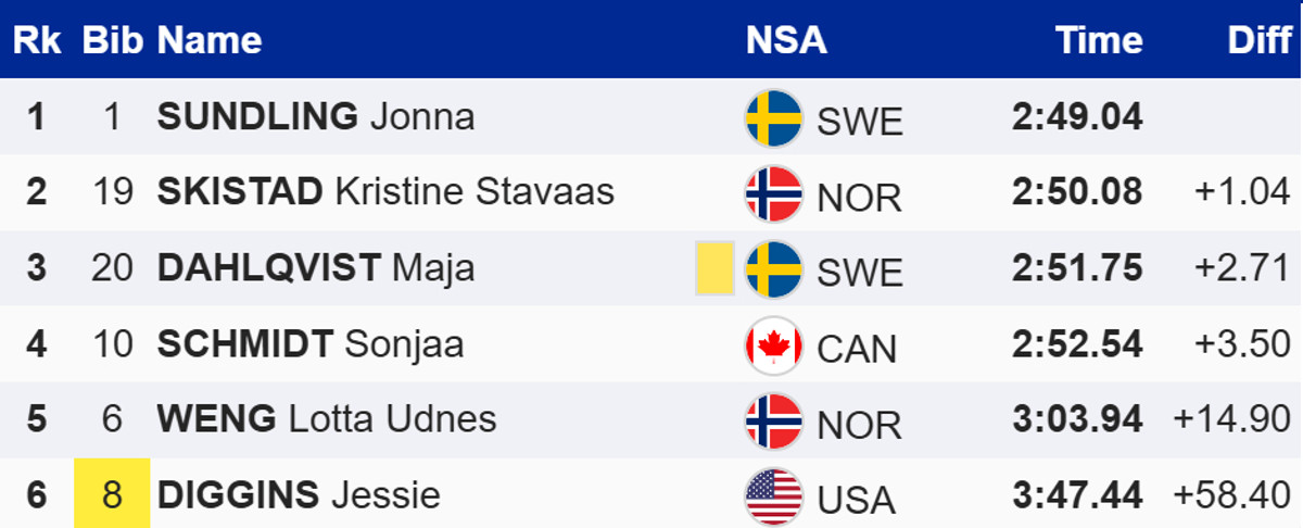 У женщин победила шведка Йонна Сундлинг, которая в решающем забеге опередила норвежку Кристин Шистад и свою партнершу по команде, Майю Дальквист.