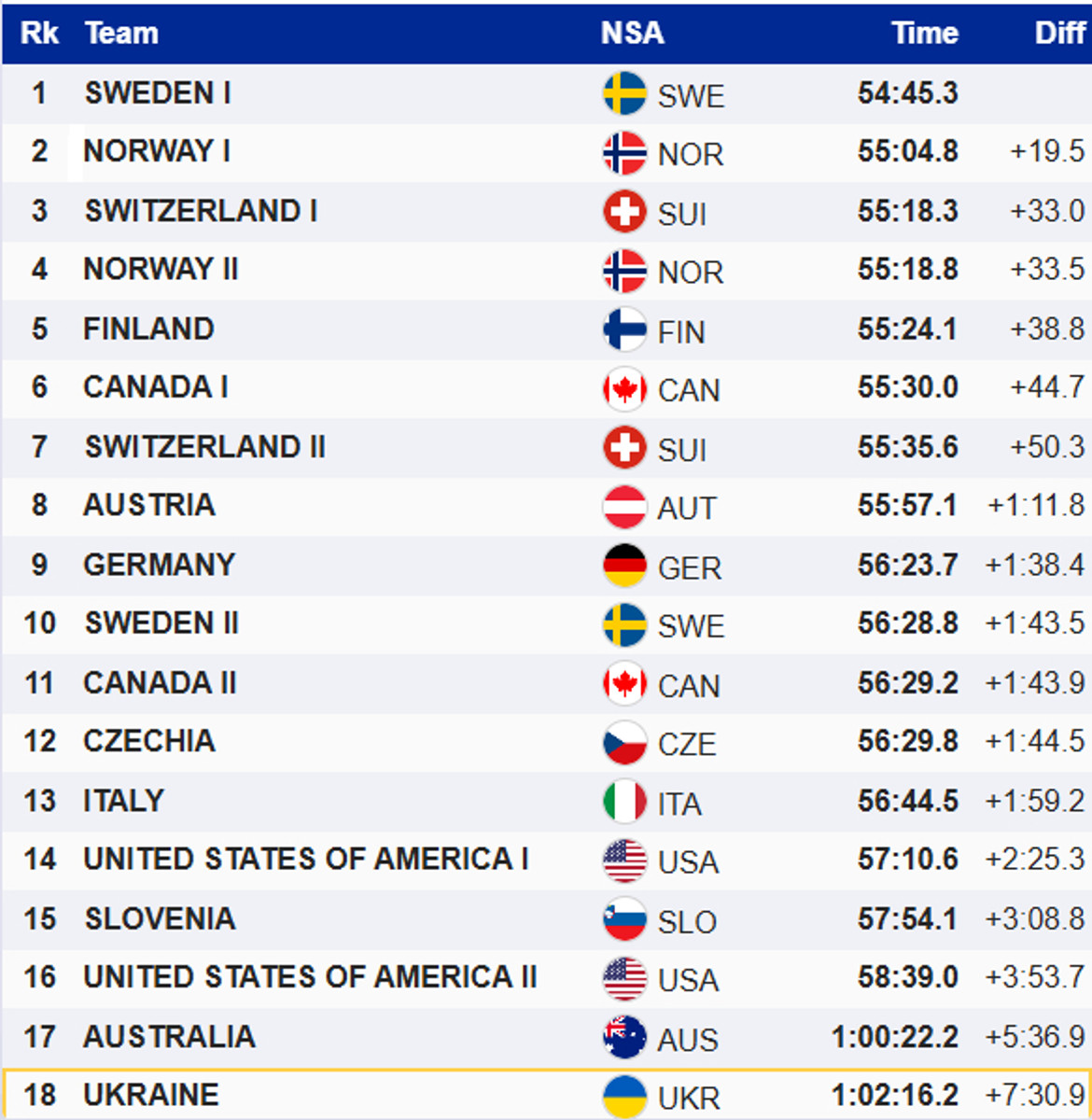 Лыжные гонки. Украина – 18-я в смешанной эстафете на Кубке мира