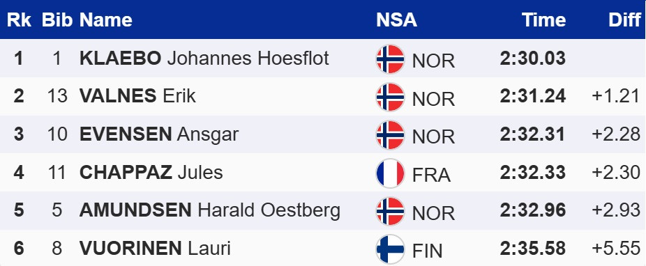 Лыжные гонки. Клэбо и Шистад выиграли первый спринт сезона