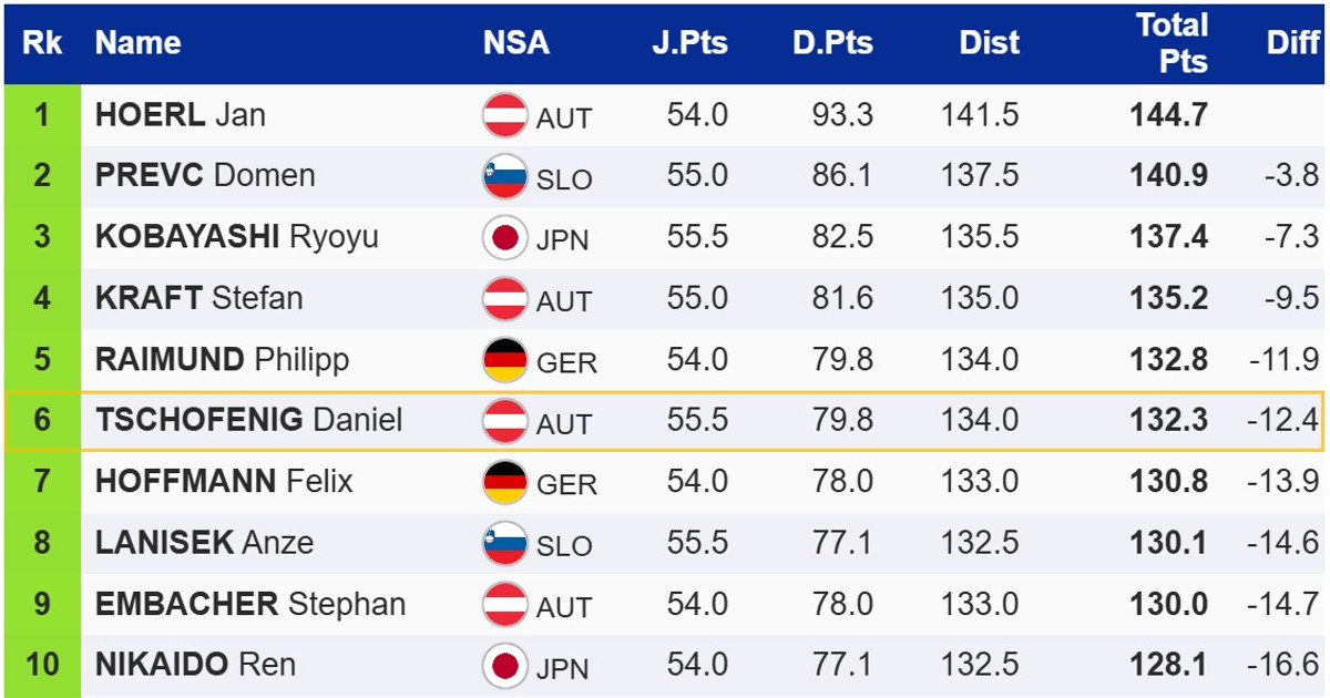 Выиграл квалификацию австриец Ян Хёрль, который опередил словенца Домена Превца и японца Рёю Кобаяси.