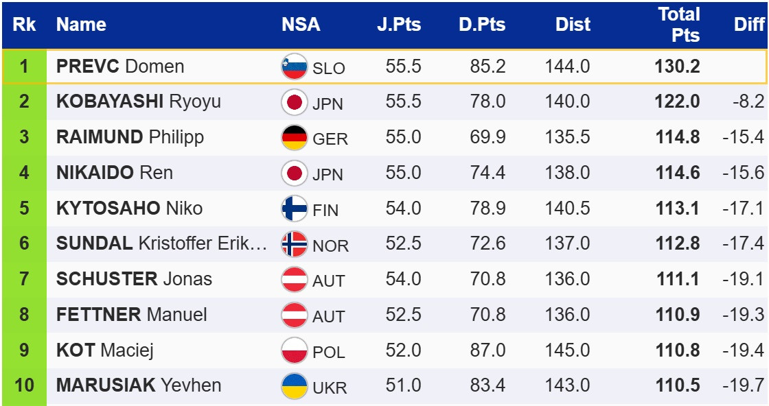 Марусяк прыгнул на 143 метра и занял в квалификации 10 место. Калиниченко удалось пролететь 118,5 метра, что принесло ему 46-й результат. Квалификацию проходят 50 лучших.