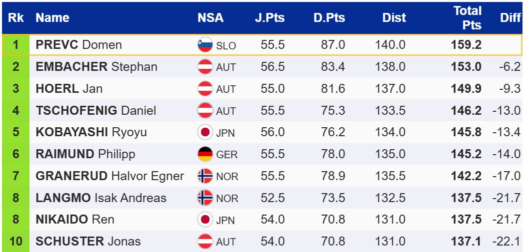 Выиграл квалификацию лидер общего зачета Турне, словенец Домен Превц. Он опередил двух хозяев соревнований, Штефана Эмбахера и Яна Хёрля.