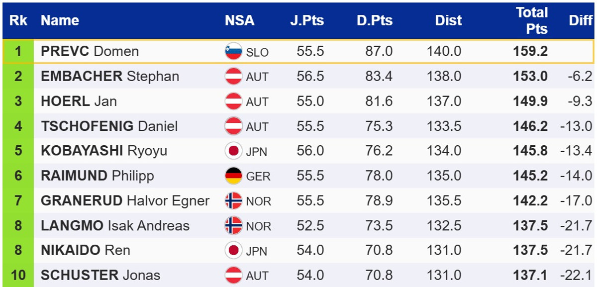 Выиграл квалификацию лидер общего зачета Турне, словенец Домен Превц. Он опередил двух хозяев соревнований, Штефана Эмбахера и Яна Хёрля.