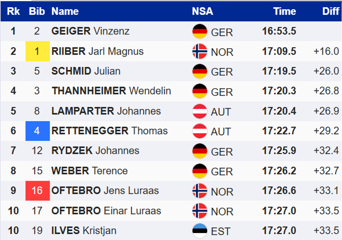Двоеборье. Гайгер снова обыграл Риибера, Мазурчук набрал очки