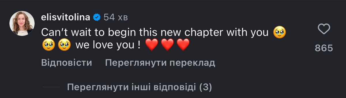 "Не могу дождаться, чтобы начать эту новую главу с тобой. Мы тебя любим!"