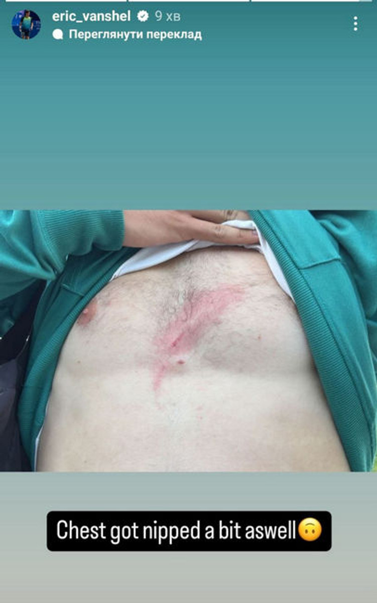 "Прощай, нос", – написал он, а также опубликовал фото с ссадинами на груди.
