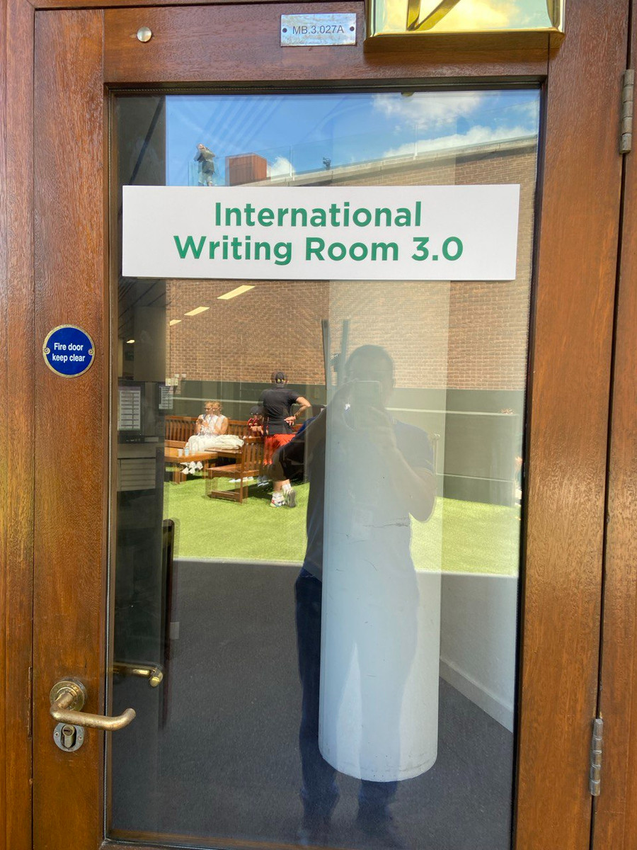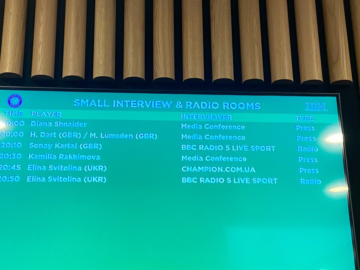 На Уимблдоне-2025 я работал в локации для международных журналистов International Writing Room 3.0. У каждого из нас был стол с большим экраном, на котором транслировались онлайн все матчи турнира – можно было выбрать любую игру на соответствующем корте. Также на большом экране можно было посмотреть всю статистику по Championship – результаты, жеребьевки, информацию об игроках и даже истории турнира.