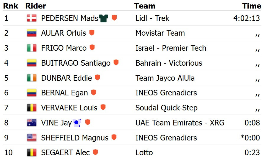 В финишном спринте с отрыва дня Педерсен опередил венесуэльца Орлуиса Аулара из Movistar и итальянца Марко Фриго из Israel Premier Tech. Для экс-чемпиона мира это четвертая победа на этапах Вуэльты за карьеру и суммарно 11-я на Гран турах.