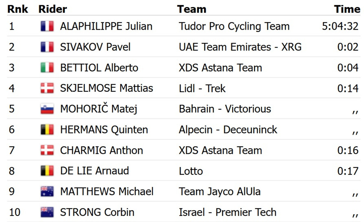 Для Алафилиппа это первая победа в составе Tudor Cycling, куда двукратный чемпион мира перешел перед стартом текущего сезона.