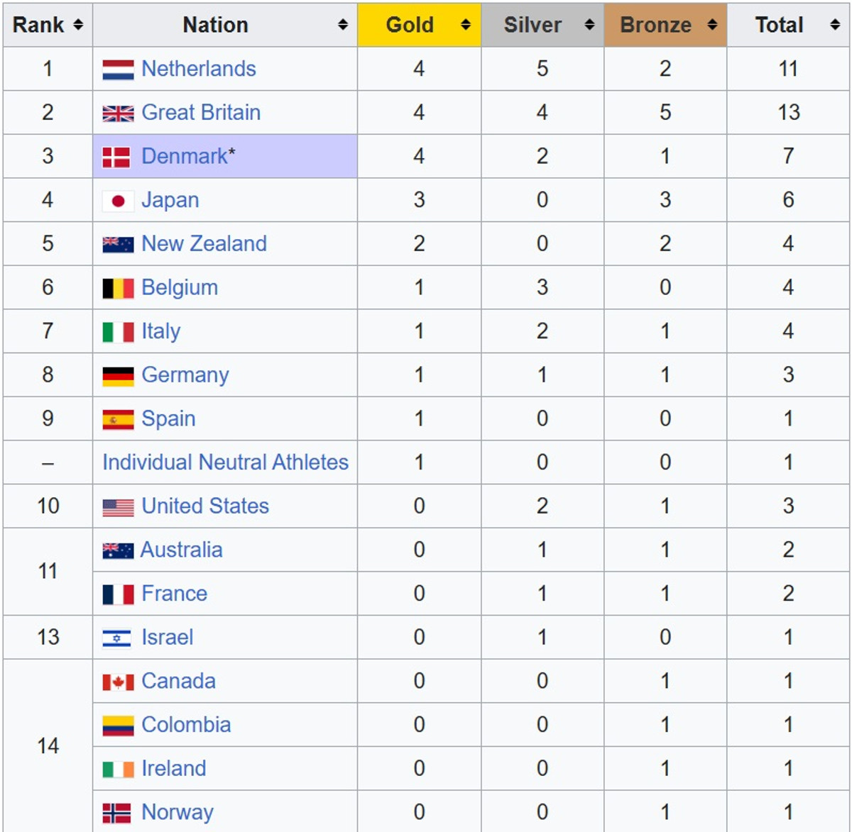 Итоговый медальный зачет выиграли Нидерланды, опередившие Великобританию и Данию по количеству серебряных наград. Сборная Украины завершила чемпионат без медалей.